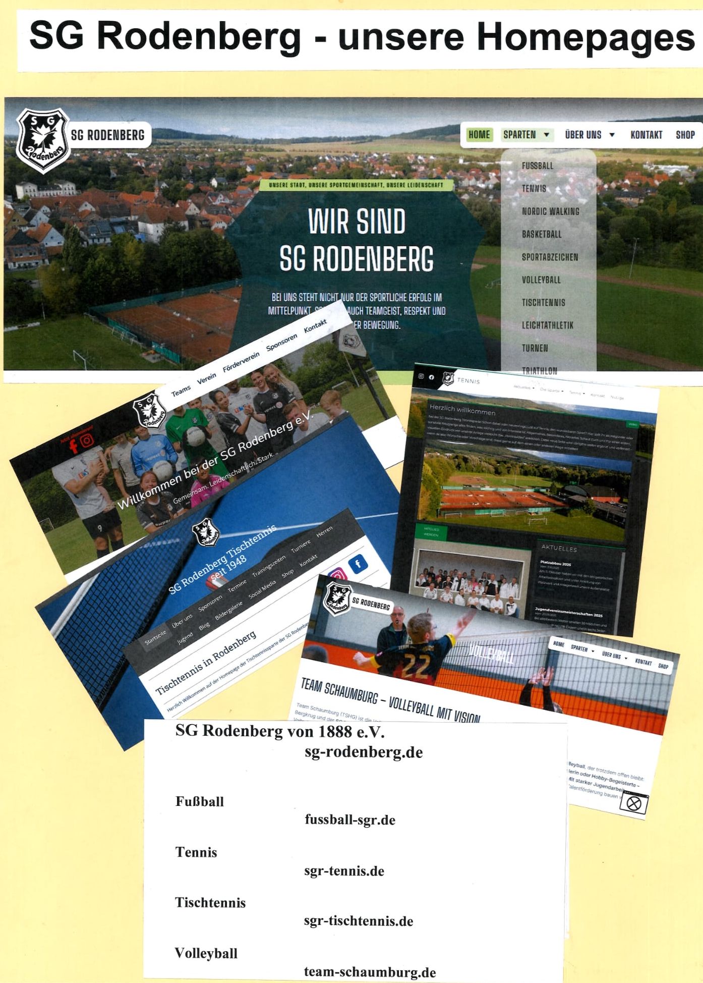 Neue SG Rodenberg-HomepagesAuch der SGR-Hauptverein und einige Schwester-Sparten haben neue Homepages. Die freuen sich bestimmt alle über einen Besuch.