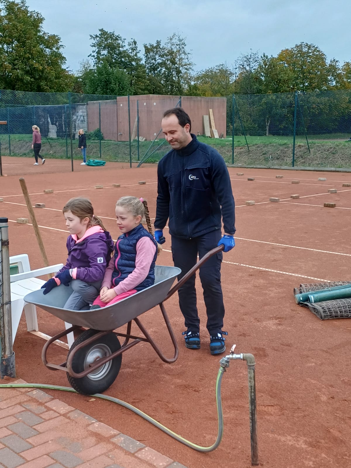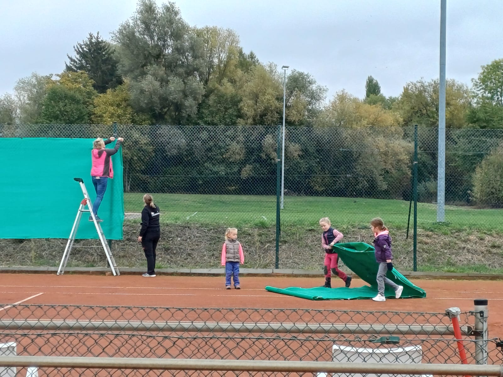 Platzabbau 2025Am 11. Oktober haben wir mit den obligatorischen Arbeitseinsätzen und unter Anleitung von Platzwart und Anlagenwart unsere Außenplätze "eingewintert": Tische, Stühle, Bänke, Besen, Feger, Walzen, Planen, Netze, Pfosten - alles musste runter und rein. Und zum Abschluss die Backsteine auf die Linien. Und, obwohl mit der Hallensaison schon zehn Tage unterwegs, musste doch die tennis- und freiluftversessene Jugend buchstäblich von den Plätzen gekarrt werden.